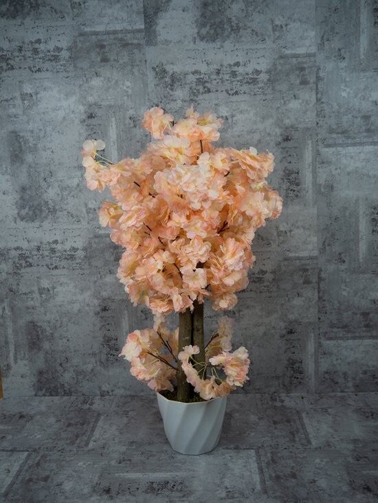 De bloesems zijn zorgvuldig vervaardigd waardoor ze bijna niet van echte bloesems te onderscheiden zijn. Met een hoogte van ongeveer 75 cm is de boom een perfecte decoratie voor in de woonkamer, slaapkamer of op kantoor. Je kunt het hele jaar door genieten van de mooie zalmkleurige bloesems zonder dat je je zorgen hoeft te maken over onderhoud en verzorging.